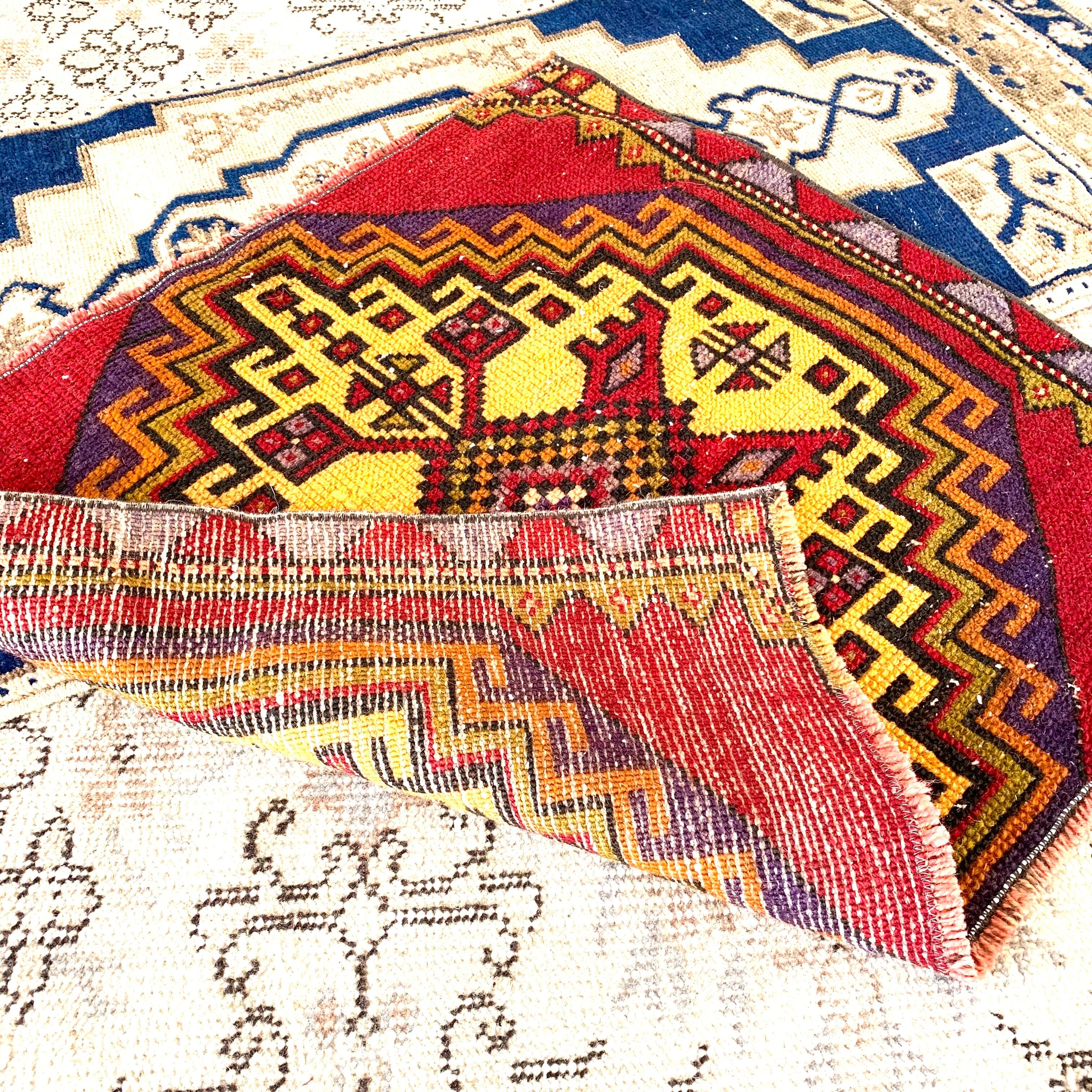 ◆ヴィンテージラグは手織り物の為、使用感がございます。また、糸のほつれ、補修跡、色むらがある場合がございます。持ち味としてお楽しみいただける場合のみご購入をお願いします。